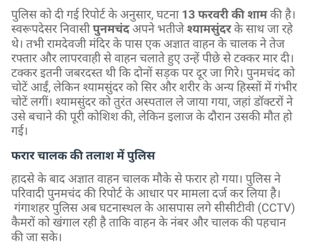 बीकानेर अज्ञात वाहन की टक्कर से बाइक सवार युवक की मृत्यु हुई।