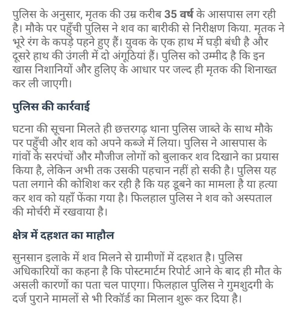बीकानेर /खाले में पड़ा मिला एक व्यक्ति का शव पहचान के प्रयास जारी।