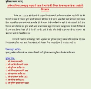 बीकानेर के कालू थाना पुलिस ने बड़ी कार्रवाई करते हुए अवैध हथियार लमछड़ बंदूक से जान से मारने की नीयत से फायर करने के एक आरोपी को गिरफ्तार किया है दिनांक 2025 को परिवादी श्री राजूराम निवासी खारी ने, थाने में उपस्थित होकर रिपोर्ट दर्ज करवाई थी इसके बाद पुलिस ने तुरंत कार्रवाई करते हुए आरोपी को गिरफ्तार किया।