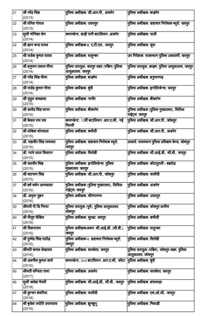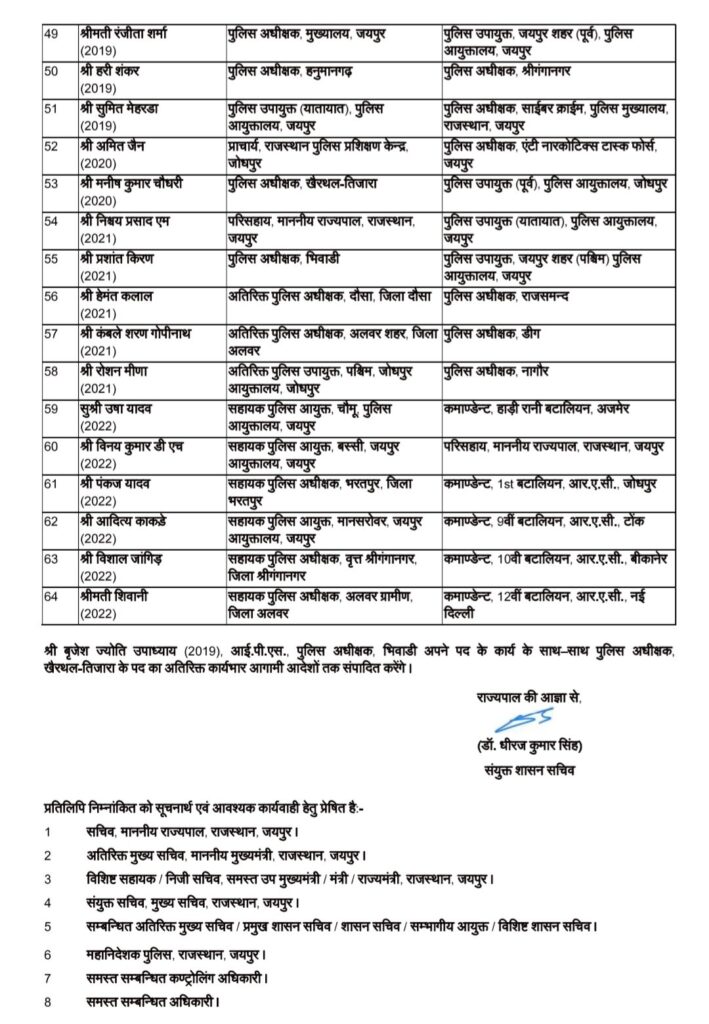राजस्थान देर रात्रि 64 आईपीएस अधिकारियों के तबादले बीकानेर के नए जिला पुलिस अधीक्षक होंगे।