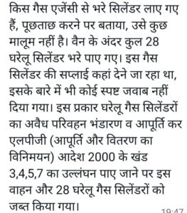 बीकानेर रसद विभाग की बड़ी कार्रवाई वाहन से 28 घरेलू सिलेंडर जप्त किये।