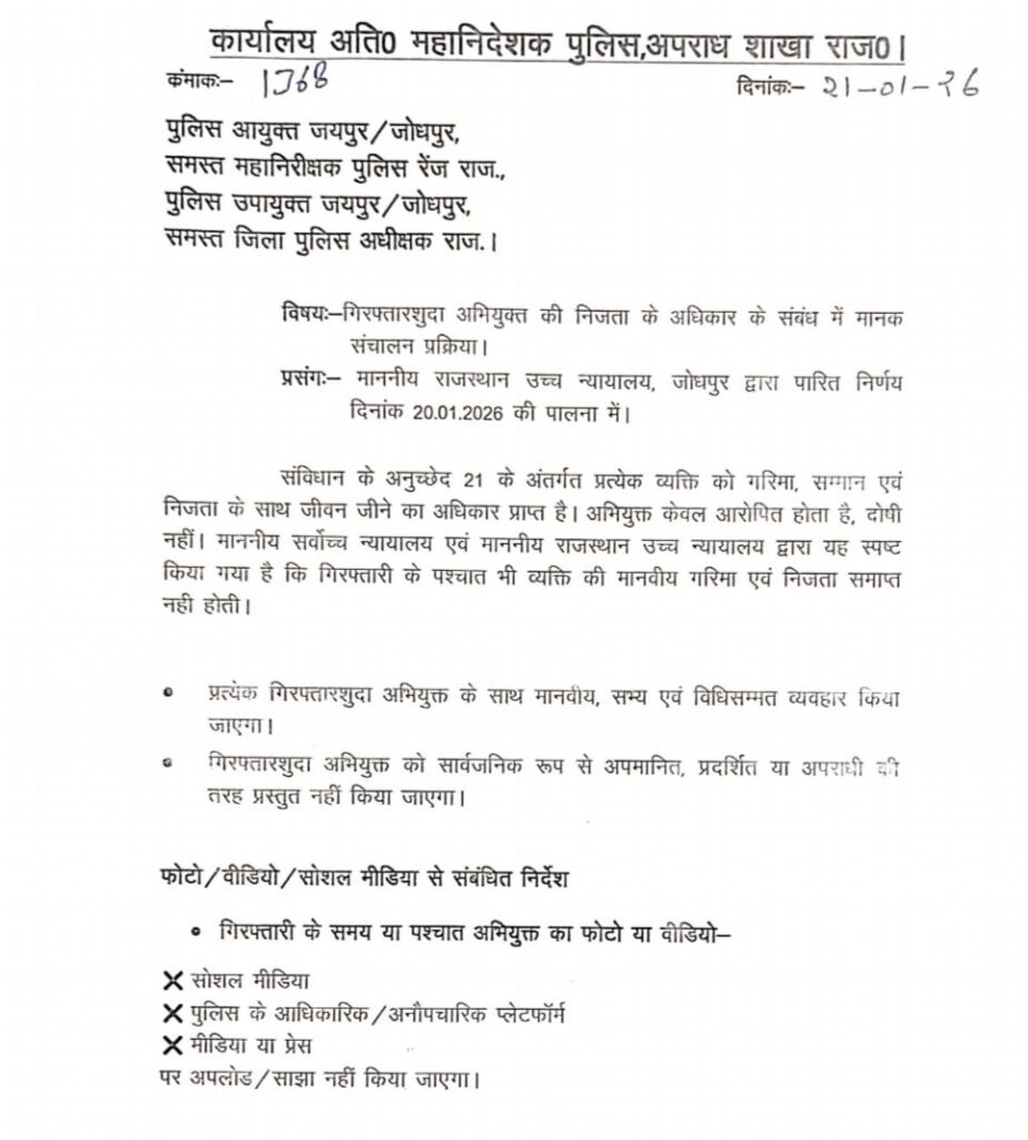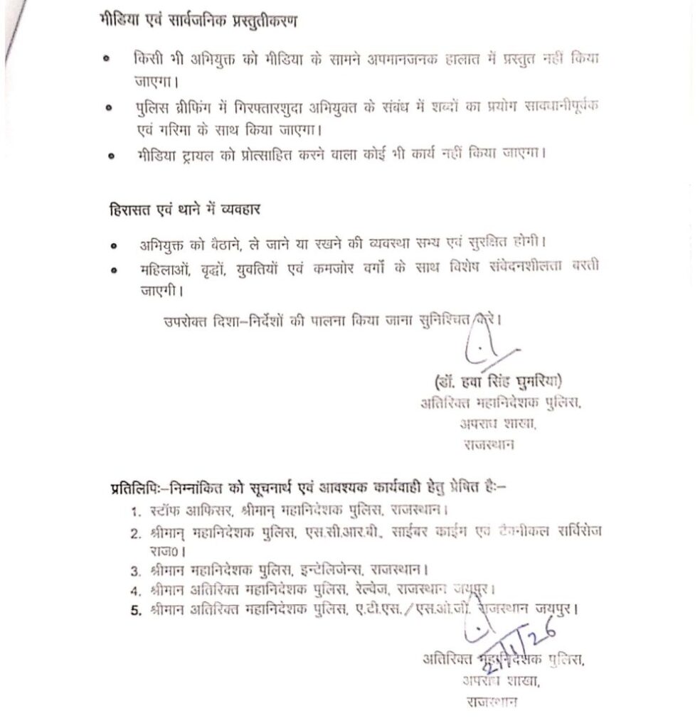 राजस्थान पुलिस का बड़ा आदेश गिरफ्तार आरोपियों को लेकर।