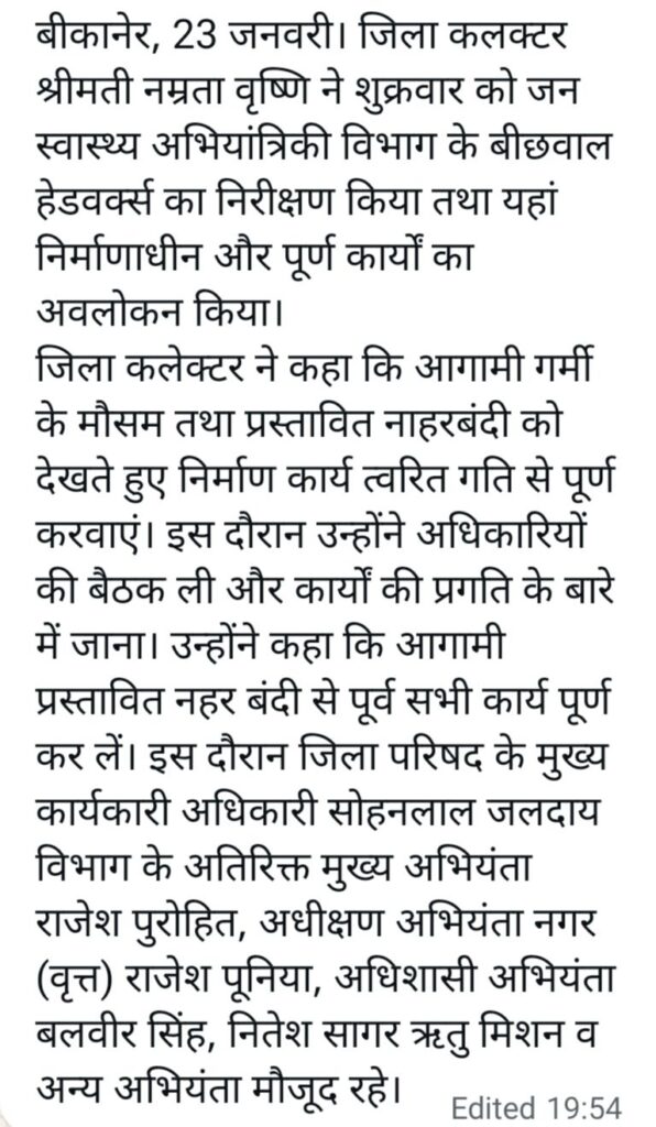 City/Local बीकानेर जिला कलेक्टर ने बीछवाल हैडक्वाटर्स का निरीक्षण किया। Pradeep Kumar Modi January 23, 2026 0 Post navigation Previous: बीकानेर जांच के दौरान अनियमिताएं पाए जाने पर तीन मेडिकल स्टोर के अनूज्ञापत्र निलंबित।Next: बीकानेर हैरान करने वाला चोरी का मामला। More Stories City/Local *उचित मूल्य की रिक्त व नवसृृजित दुकानों के साक्षात्कार 24 से 26 फरवरी को* Pradeep Kumar Modi February 11, 2026 0 City/Local बीकानेर सिलेंडर ब्लास्ट पांच लोग चपेट में आए अस्पताल में इलाज जारी। Pradeep Kumar Modi February 11, 2026 0 City/Local Crime पुलिस ने दो शातीर बदमाशों को पकड़ा नशीला पदार्थ व हथियार सहित Pradeep Kumar Modi February 10, 2026 0 Leave a Reply Cancel replyYour email address will not be published. Required fields are marked *Comment * Name * Email * Website Save my name, email, and website in this browser for the next time I comment.
