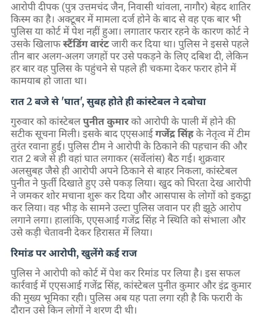 बीकानेर कई किलोमीटर दूर पीछा करके पुलिस ने दुष्कर्म के आरोपी को पकड़ा।