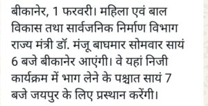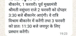 City/Local बीकानेर में सोमवार को आएंगी पूर्व मुख्यमंत्री वसुंधरा राजे और राज्य मंत्री। Pradeep Kumar Modi February 1, 2026 0 Post navigation Previous: बीकानेर रसद विभाग की बड़ी कार्रवाई वाहन से 28 घरेलू सिलेंडर जप्त किये।Next: बीकानेर चार मेडिकल स्टोर के अनुज्ञा पत्र निलंबित किये More Stories City/Local *उचित मूल्य की रिक्त व नवसृृजित दुकानों के साक्षात्कार 24 से 26 फरवरी को* Pradeep Kumar Modi February 11, 2026 0 City/Local बीकानेर सिलेंडर ब्लास्ट पांच लोग चपेट में आए अस्पताल में इलाज जारी। Pradeep Kumar Modi February 11, 2026 0 City/Local Crime पुलिस ने दो शातीर बदमाशों को पकड़ा नशीला पदार्थ व हथियार सहित Pradeep Kumar Modi February 10, 2026 0 Leave a Reply Cancel replyYour email address will not be published. Required fields are marked *Comment * Name * Email * Website Save my name, email, and website in this browser for the next time I comment.